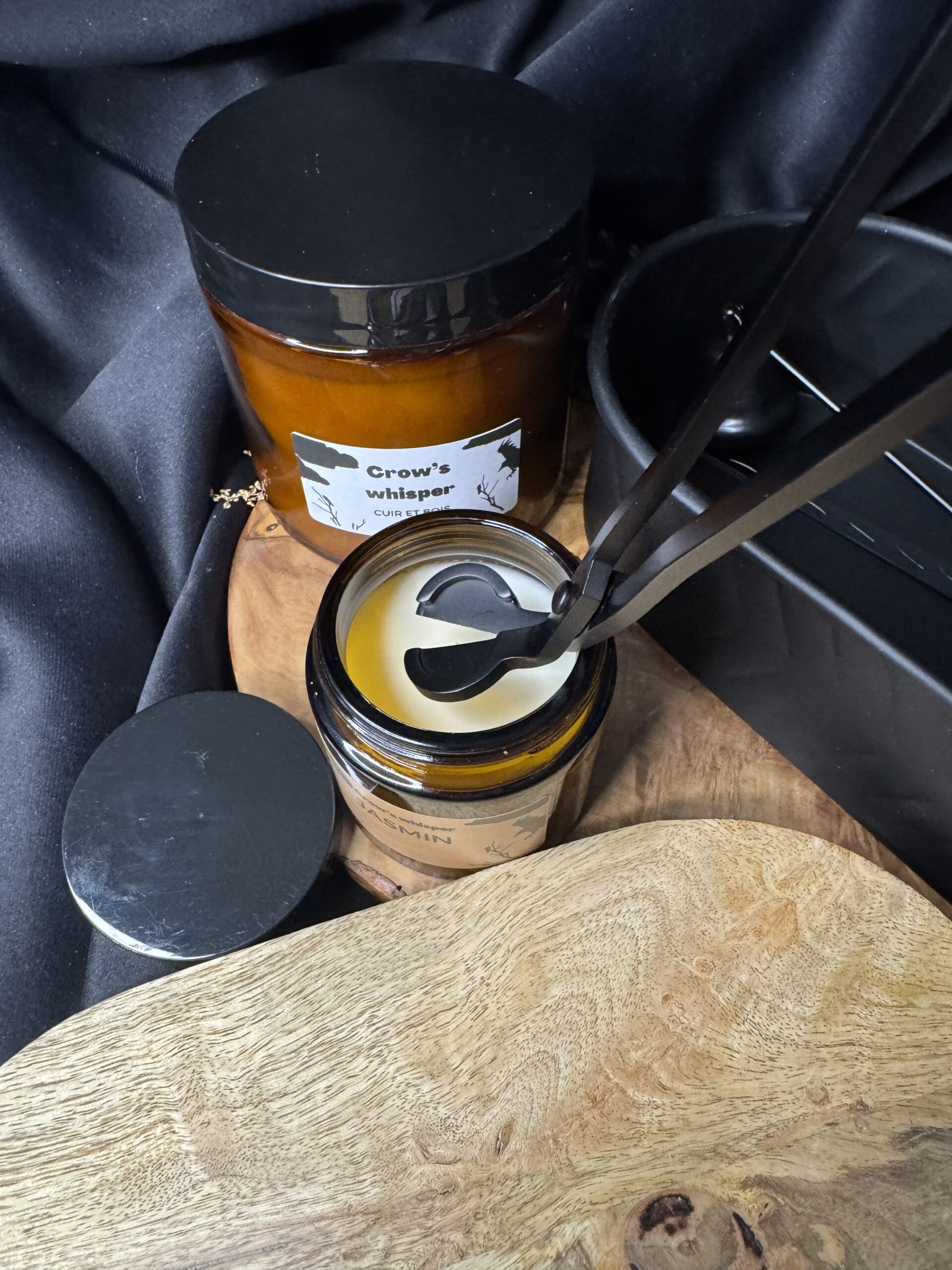 Ensemble d’outils en acier inoxydable pour éteindre et entretenir la mèche des bougies.